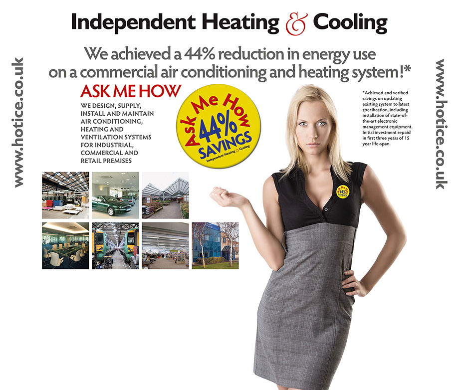 Exhibition stand for Independent Heating & Cooling for use on a 'pop-up' system display, 2.5 metres wide x 2.2mm tall. Sourcing of main library image plus photography for installed images, design, artwork and managing files to supply complete exhibition stand with ancillaries.